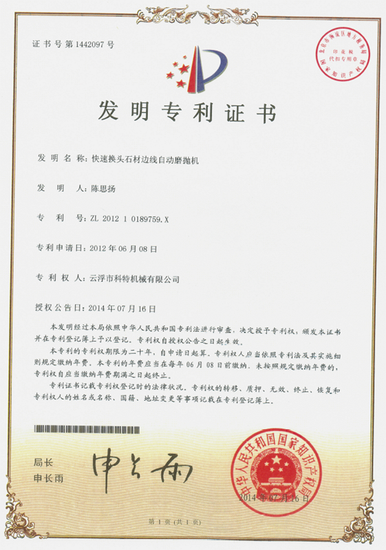 企業(yè)組建了“云浮市石材機(jī)械裝備工程技術(shù)研究開(kāi)發(fā)中心”,并與高校和科研院所密切合作,致力于光機(jī)電一體化產(chǎn)品的研發(fā)、生產(chǎn)、銷(xiāo)售和服務(wù)。主要產(chǎn)品有框架鋸、全自動(dòng)連續(xù)磨拋機(jī)、橋式自動(dòng)切割機(jī)、全自動(dòng)仿形石線(xiàn)機(jī)、數(shù)控金剛石繩鋸、裁切機(jī)等。產(chǎn)品具有自動(dòng)化程度高、加工精度高和生產(chǎn)效率高等特點(diǎn)。產(chǎn)品除國(guó)內(nèi)銷(xiāo)售外,還出口到歐美、東南亞、韓國(guó)、印度、中東、非洲、俄羅斯、澳大利亞等國(guó)家和地區(qū),深受用戶(hù)好評(píng)。“橋式自動(dòng)切割機(jī)”被認(rèn)定為廣東省高新技術(shù)產(chǎn)品,擁有發(fā)明專(zhuān)利1項(xiàng)、實(shí)用新型專(zhuān)利1項(xiàng)。